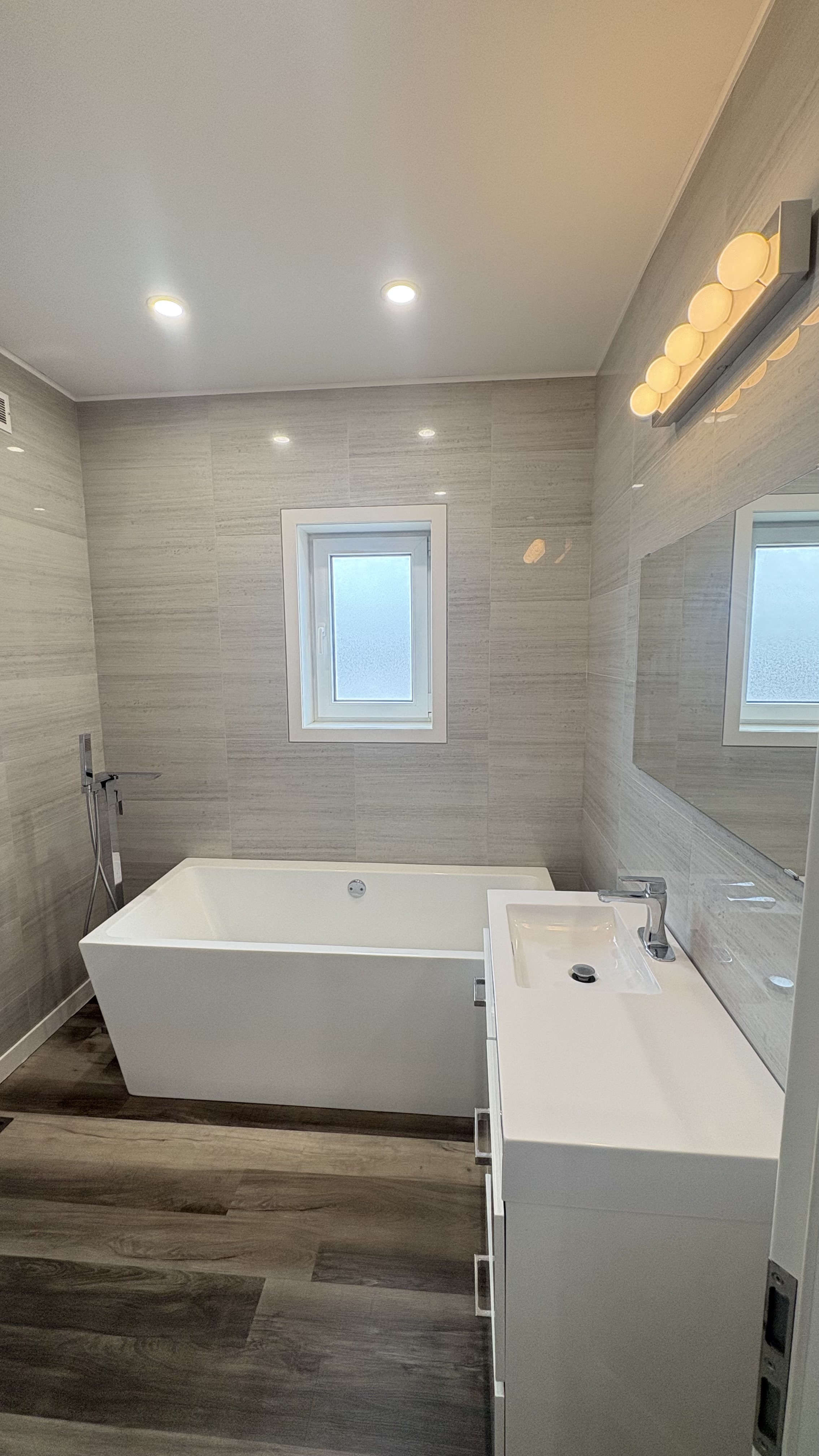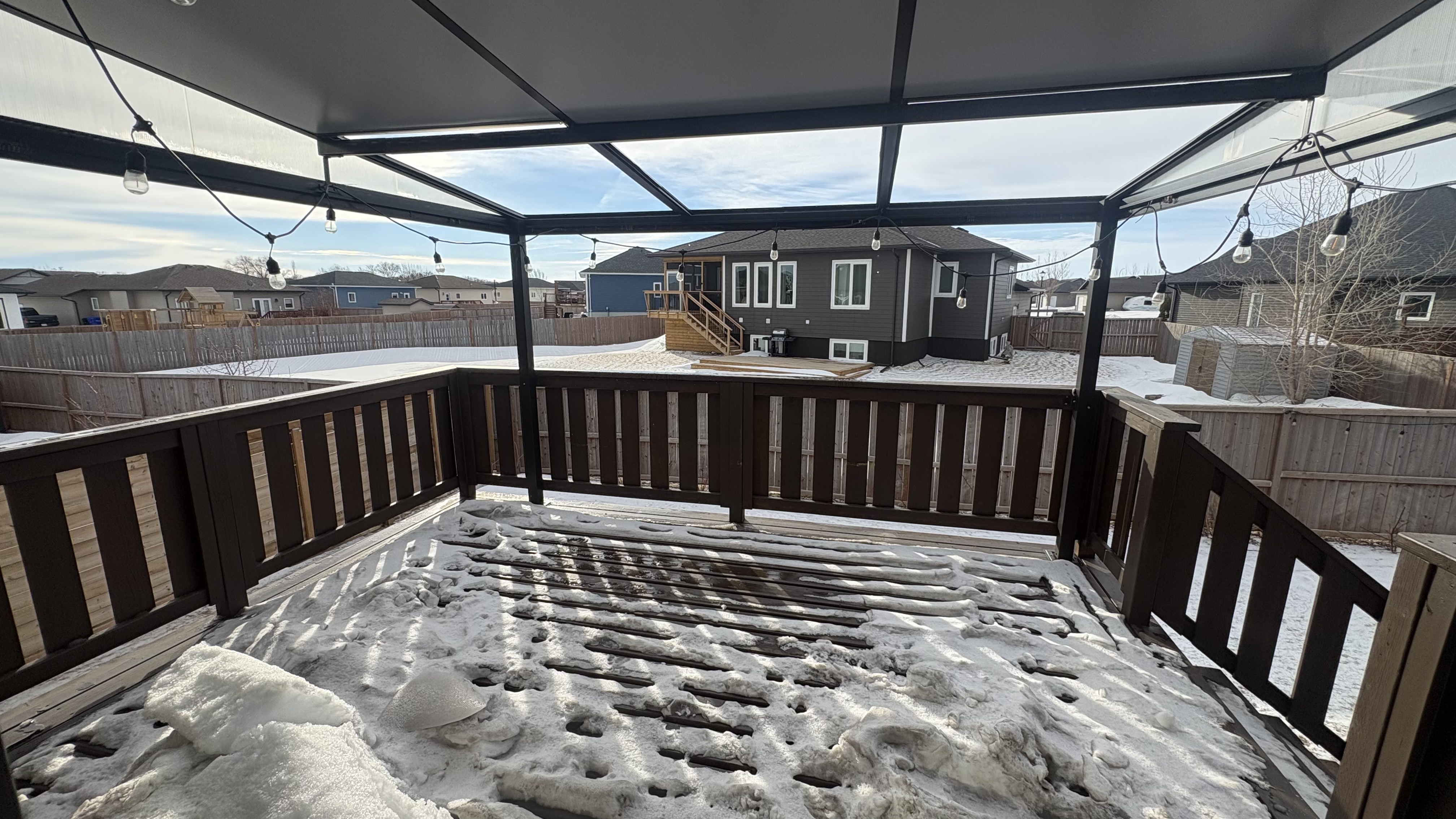 Showings start date – February 16th. Well-built 1,298 sq. ft. custom concrete home offering comfort, quality, and modern finishes. The main floor features two bedrooms with walk-in closets and a 4-piece bathroom with ceramic tile surround. Both the main floor and basement have 9’ ceilings and plenty of natural light. The kitchen offers ample storage, quartz countertops, under-cabinet lighting, built-in vacuum with kick sweep, and a food grinder. Custom lighting accents the living areas, kitchen island, stairs, and bedroom. The fully finished basement includes a large bedroom with walk-in closet, a 3-piece bathroom with ceramic tile and tropical shower, and a cedar-lined sauna. Heated floors run throughout the basement. The exterior features Hardie board siding, European-style windows and doors, a fully fenced yard, and a covered deck with sliding-roof gazebo. The 26’ x 26’ garage with 10’ x 10’ doors provides excellent space for vehicles and storage. Conveniently located near school. Contact your Realtor to book a showing. Disclosure: The listing agent is also the owner of the home.