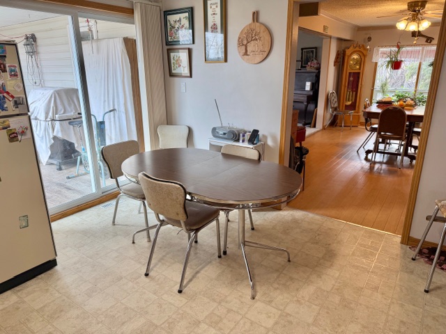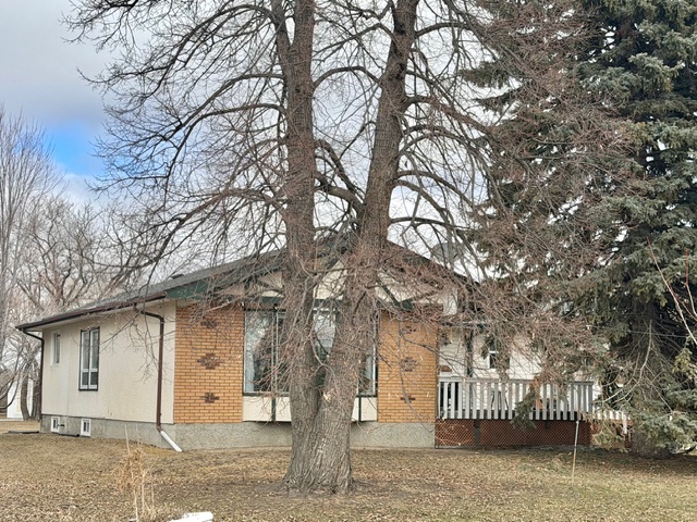 The property features a treed yard offering privacy and shelter, along with an impressive selection of fruit trees and shrubs, including multiple variaties of Saskatoon berries, cherries, plums, apples, grapes, and raspberries—ideal for those looking to enjoy homegrown produce.
