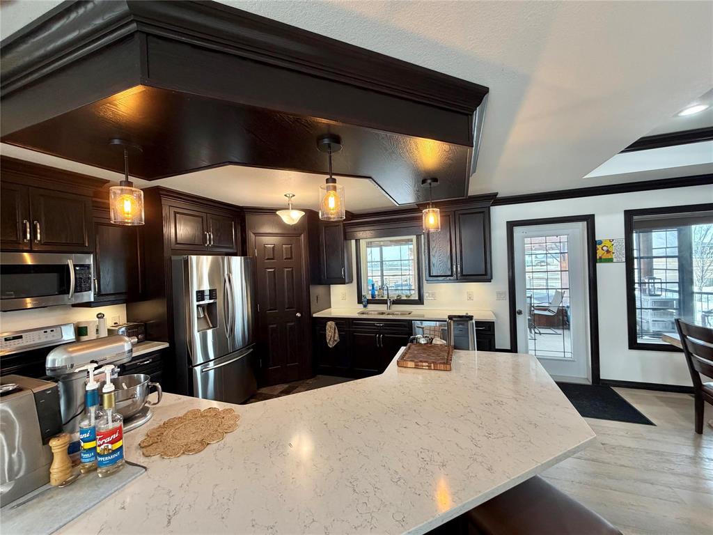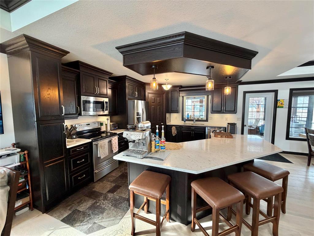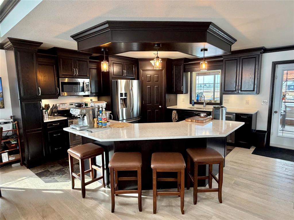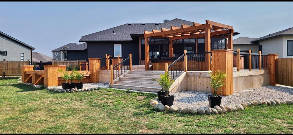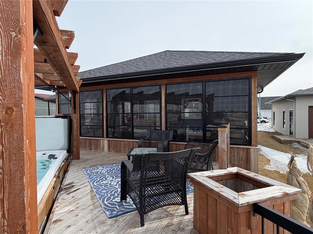 Welcome to this beautifully designed 1,346 sq ft home that perfectly blends comfort, functionality, and lifestyle! Step inside to a stunning kitchen featuring rich dark cabinetry with quartz counter tops, quality finishes, and stainless steel appliances—ideal for both everyday living and entertaining. The home offers 2 + 3 bedrooms, providing plenty of space for family, guests, or a home office setup. All 3 of the bathrooms are complete with tub/showers for your convenience. The primary suite is a true retreat, complete with a private ensuite and two closets for added convenience and storage. Enjoy your mornings and evenings in the spacious 3-season sunroom, which opens onto a gorgeous backyard oasis. You’ll love the 8 x 14 saltwater Arctic Ocean Legend Swim Spa, expansive decking, and raised garden beds—perfect for relaxing or hosting summer gatherings. Car enthusiasts and hobbyists will appreciate the triple car garage, (26 x25 plus 11.67 x 22) featuring epoxy floors, floor drains, and both hot and cold water taps. This home checks all the boxes for comfort, style, and outdoor enjoyment—don’t miss your chance to make it yours!